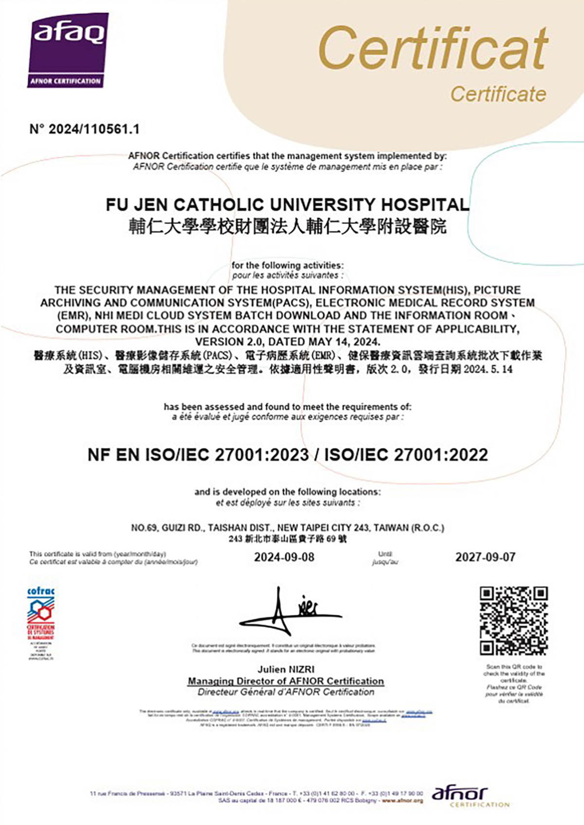 本次獲獎不僅是對輔大醫院防疫治理機制與感管文化的高度肯定,更彰顯本院對病人安全、同仁健康與永續照護責任的堅持與實踐。